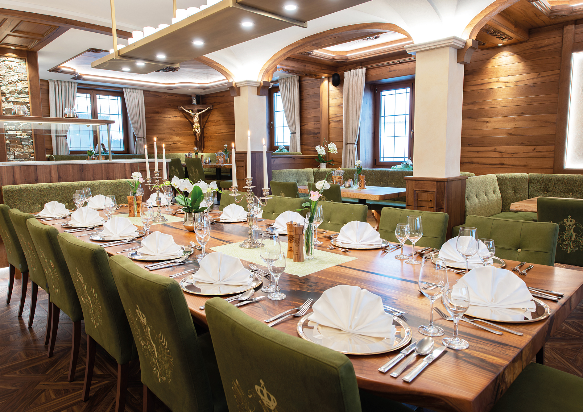 ... bieten wir unseren Gästen in der ADLER - Tenne, Zirbelstube, Schwabenstube, in der alten Brauerei, an der Bar und am offenen Kamin, sowie im Biergarten.